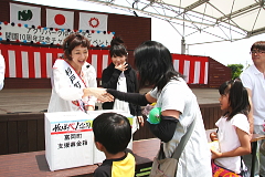 午後から豪雨にみまわれてしまいましたが、北陽・シンデレラの呼びかけで、たくさんの方々が募金をしてくださいました。楽しいコントも披露してくれました。