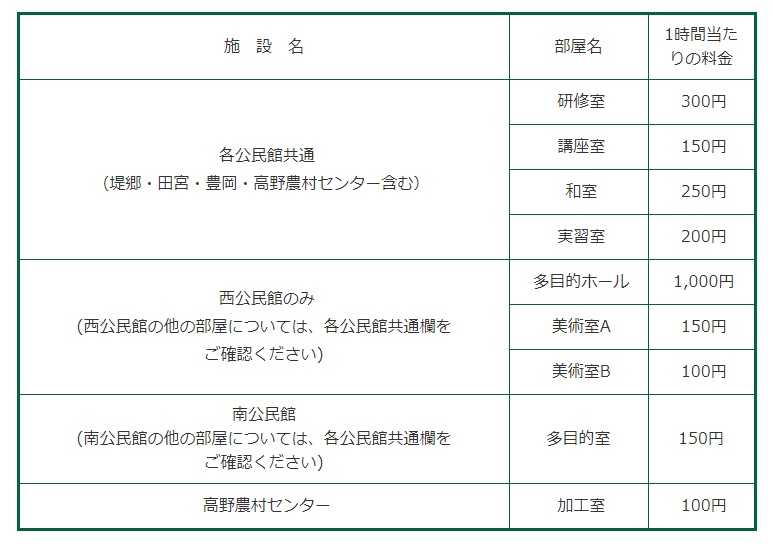 公民館 施設利用料金一覧 [その他のファイル/87KB]