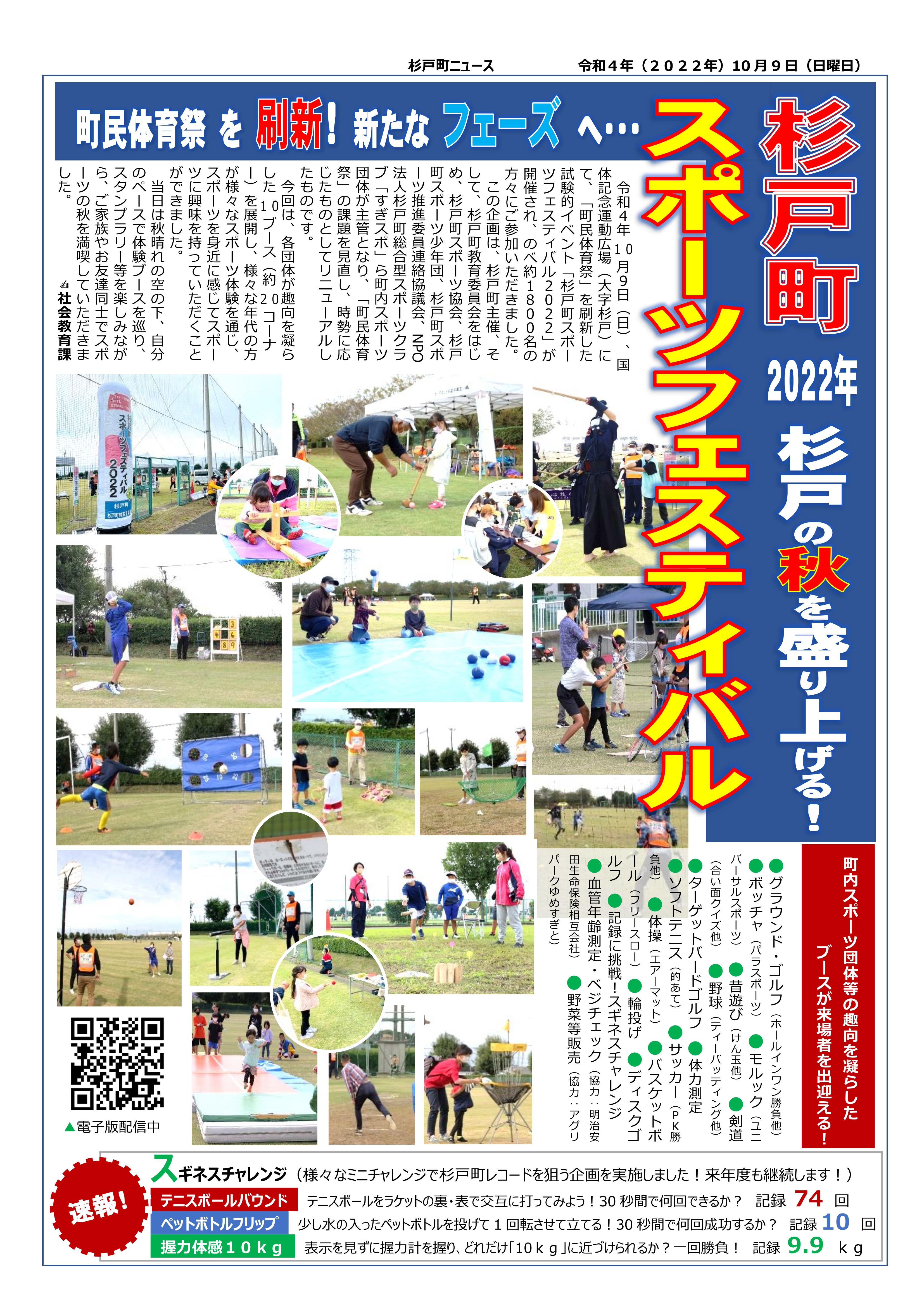 杉戸町ニュース 令和4年(2022年)10 月 9 日(日曜日)[PDFファイル/1.03MB]