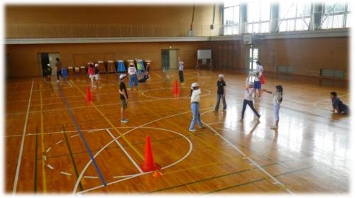 コートを広めにとって、ボール2個のドッヂボールで盛り上がっていました。
