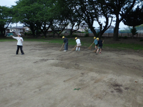明日の運動会に向け、5,6年生が運動会準備を行いました。