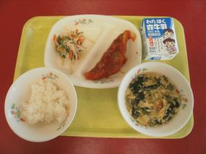 今日は、「しょうが」についてお話しします。給食に時々登場しているしょうが。おろしたものもありますが、杉戸町の学校給食では、八百屋さんから仕入れた生のしょうがを使っています。その方が風味がいいからです。しょうがには、食欲を増進させる効果や、肉や魚の臭みを取る効果、殺菌効果、また、香りは気分をリラックスさせる効果があるそうです。皮のすぐ下にうま味成分があるので、スプーンの先を使って皮をむいて使うのがコツです。